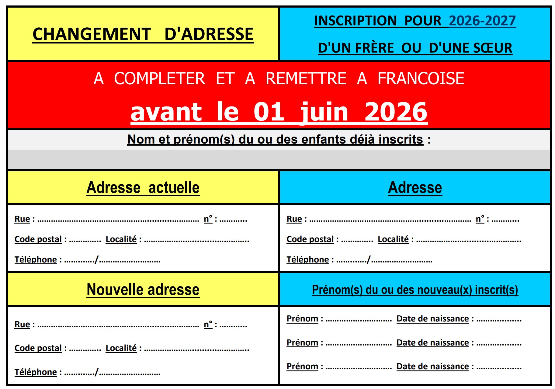 ADRESSE ET INSCRIPTION 2025-202